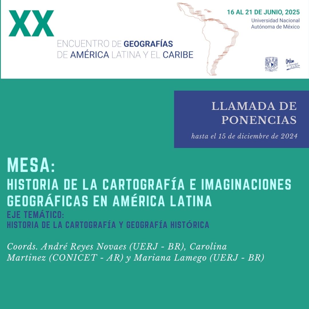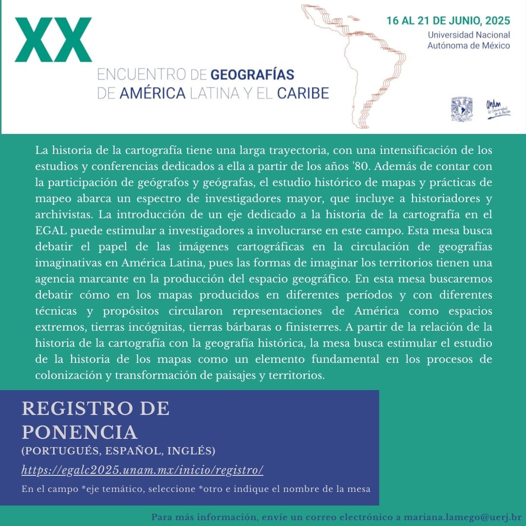 Mayor información sobre el XX Encuentro de Geografías de América Latina y el Caribe del 16 al 21 de junio de 2025 en el campus Ciudad Universitaria en la Ciudad de México, en el marco del cual se convoca esta mesa en: https://egalc2025.unam.mx/