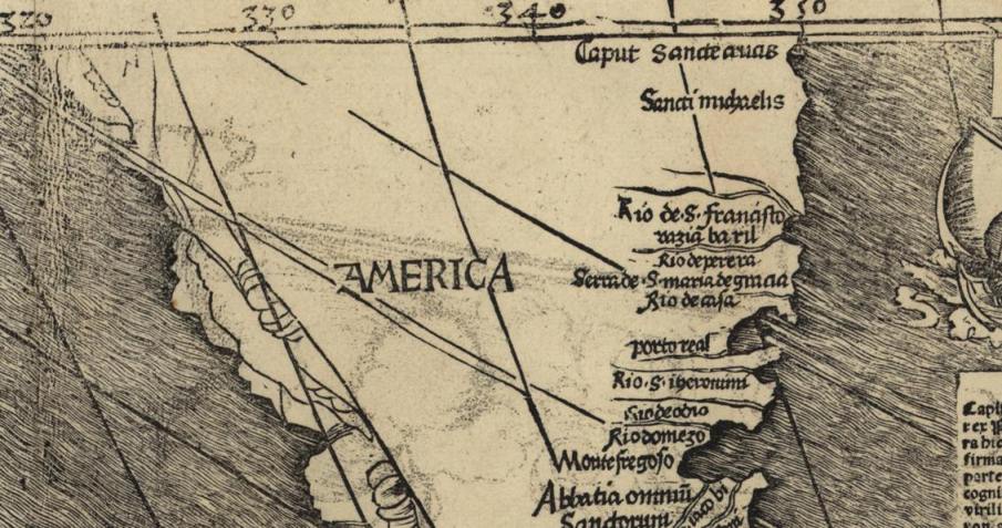 “America” on Martin Waldseemüller’s 1507 world map (detail) Courtesy of the Library of Congress.