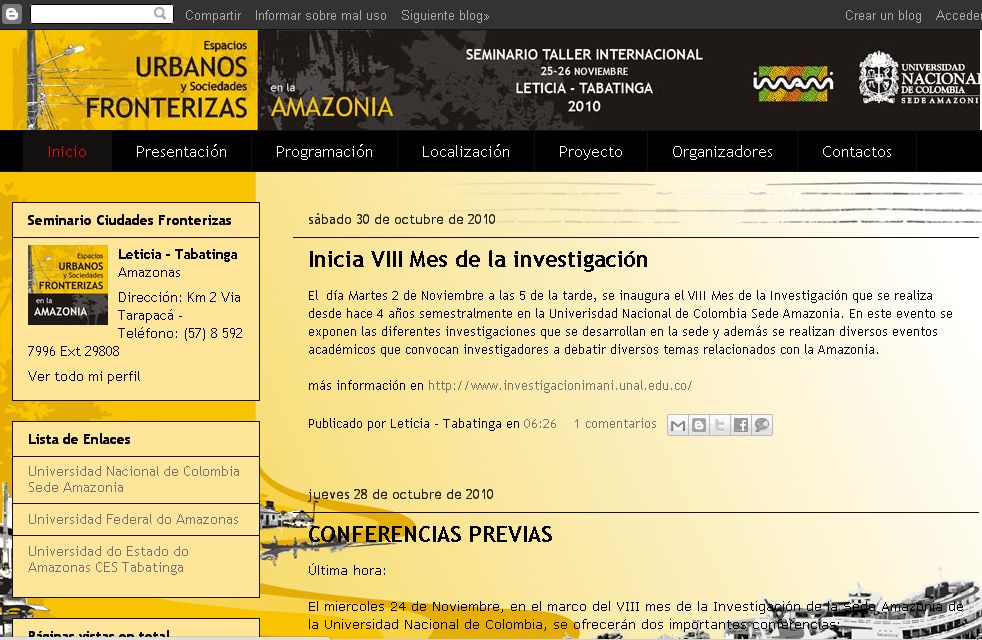 La Universidad Nacional de Colombia Sede Amazonia organiza un evento sobre Espacios Urbanos y Sociedades Fronterizas en la Amazonia. Este tendrá lugar el 25 y 26 de Noviembre en Leticia y desde ya están las inscripciones abiertas. Más Información AQUI